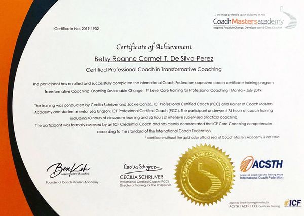 She is a graduate of Ateneo de Manila University with a degree in Bachelor of Science in Management Engineering (BS ME) Minor in Marketing. She pursued further studies in supply chain in which she earned a Diploma in Supply Chain Management from the De La Salle-College of St. Benilde. Because of her passion for service, she took a course in professional coaching and earned a Certificate in Transformative Coaching from Coach Masters Academy, Singapore. She also completed Successful Strengths Coaching from Gallup.